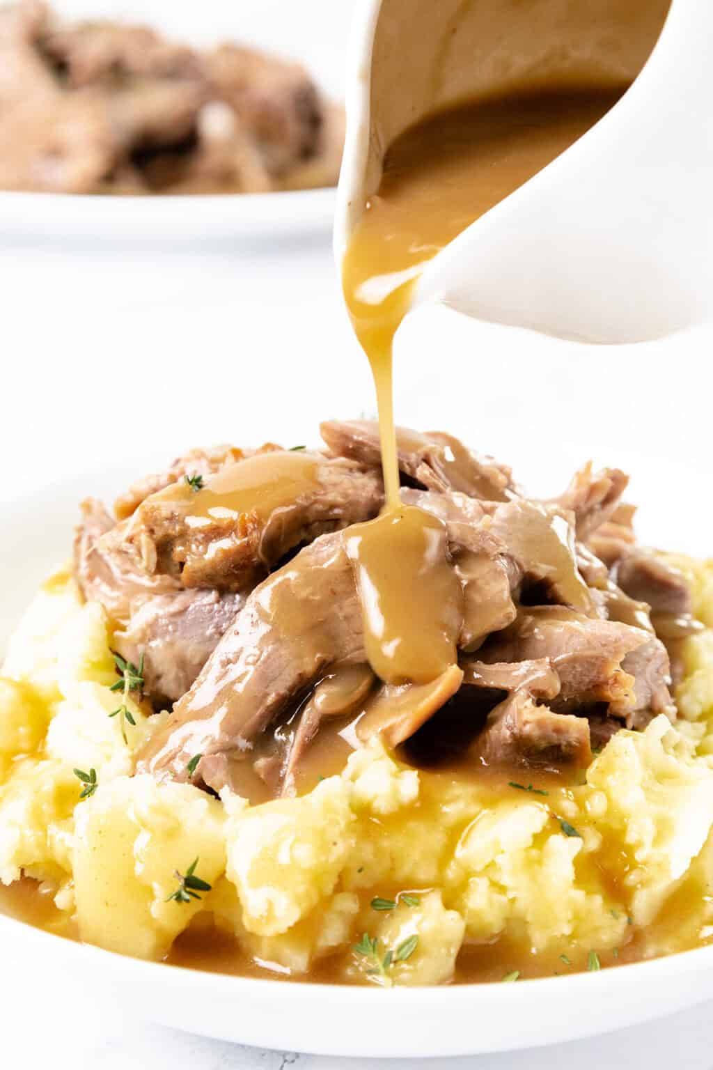 This slow-cooked leg of lamb is fall-apart tender with rich, savory flavors from white wine, garlic, and herbs. It's deeply comforting, incredibly juicy, and finished with a silky sherry gravy.