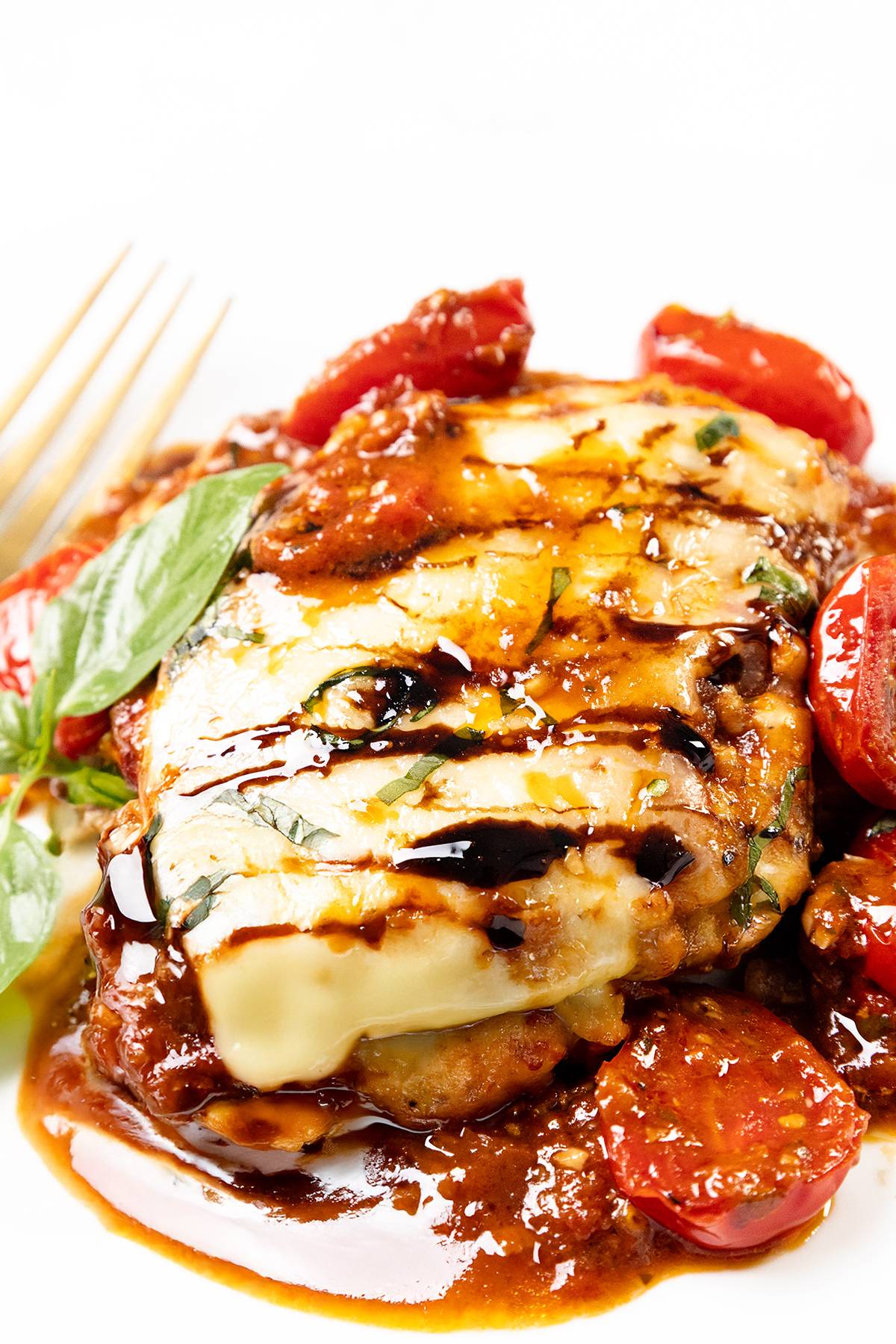 Golden-seared chicken smothered in a garlicky balsamic tomato sauce, topped with melty mozzarella and fresh basil. Simple, flavorful, and totally crave-worthy.