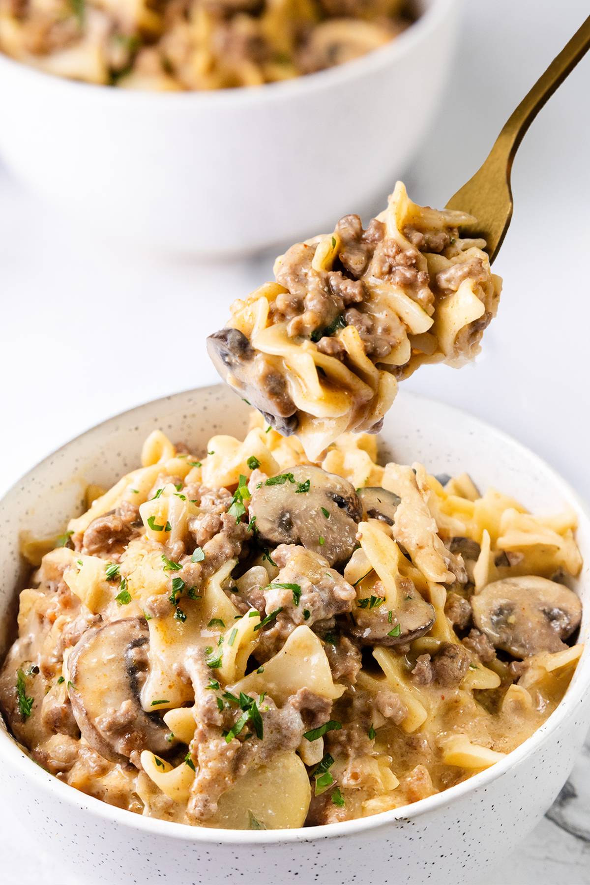 This one-skillet ground beef stroganoff is rich, creamy, and packed with flavor. The savory combination of beef, mushrooms, and tender egg noodles makes it the perfect comfort food for any night of the week.