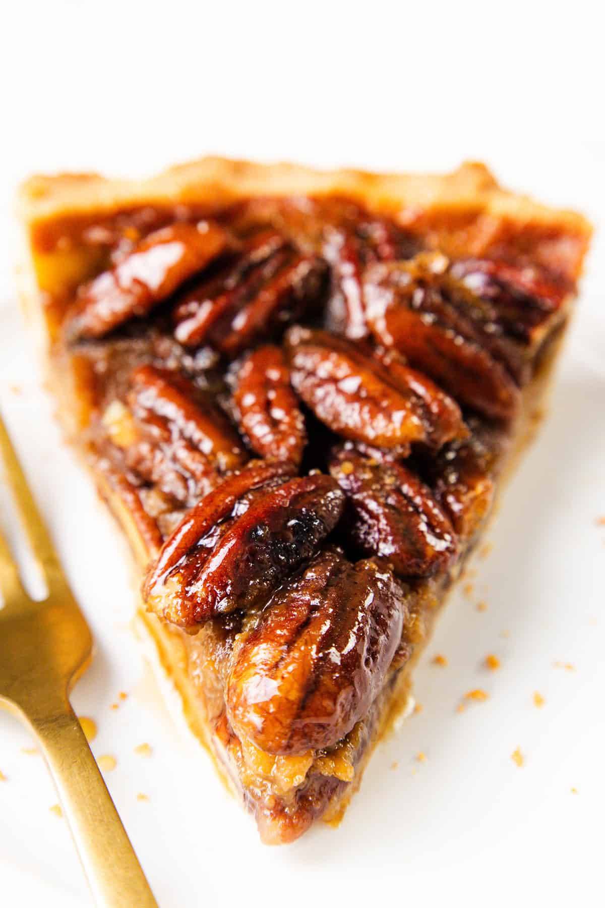 This pecan pie is perfectly balanced: buttery, nutty, caramel-sweet with a rich, gooey, corn syrup-free filling, and crisp flaky crust. Toasted pecans add warmth and crunch, while browned butter and maple syrup provide depth without excessive sweetness.
