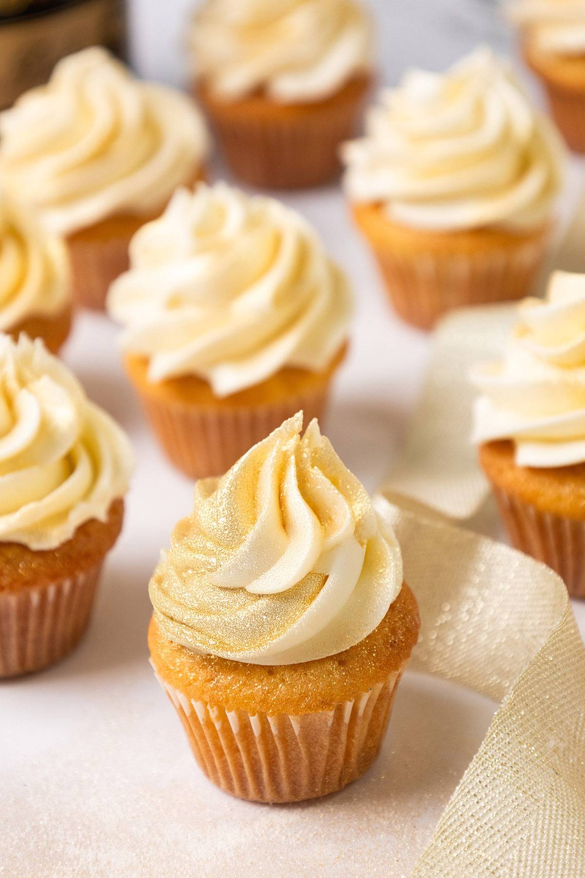 These champagne cupcakes are light and tender with a subtle champagne flavor and a silky buttercream that adds a sweet, celebratory finish.